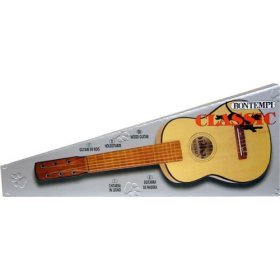 GENERAL FEATURES: This Wood Guitar by Bontempi is a Real First Instrument with six strings and a special music method that teaches some basic cords while you're having fun! This wood instruments from Italy will delight any aspiring musician. The Guitar is about 21 inches long. For age five and up.